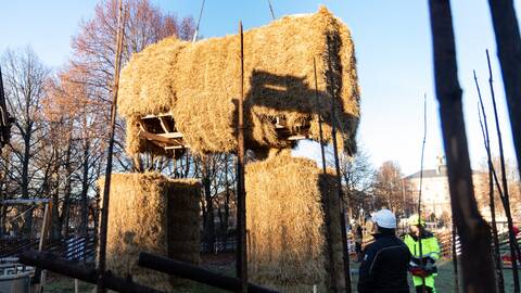 Gävlebocken : Gavlebocken Gavlebocken تÙÛÛØªØ± / Vanligtvis samlas tiotusentals människor för att bevittna den högtidliga invigningen av gävlebocken på slottstorget i gävle.